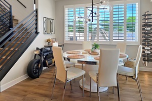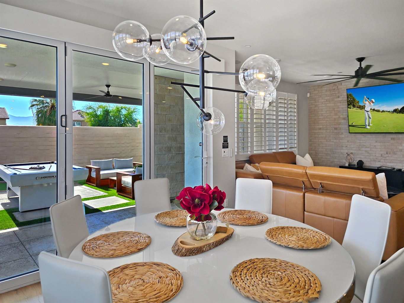 ✔ Large dining table w/ seating for 6 (converts to a poker table) + breakfast bar w/ seating for 5