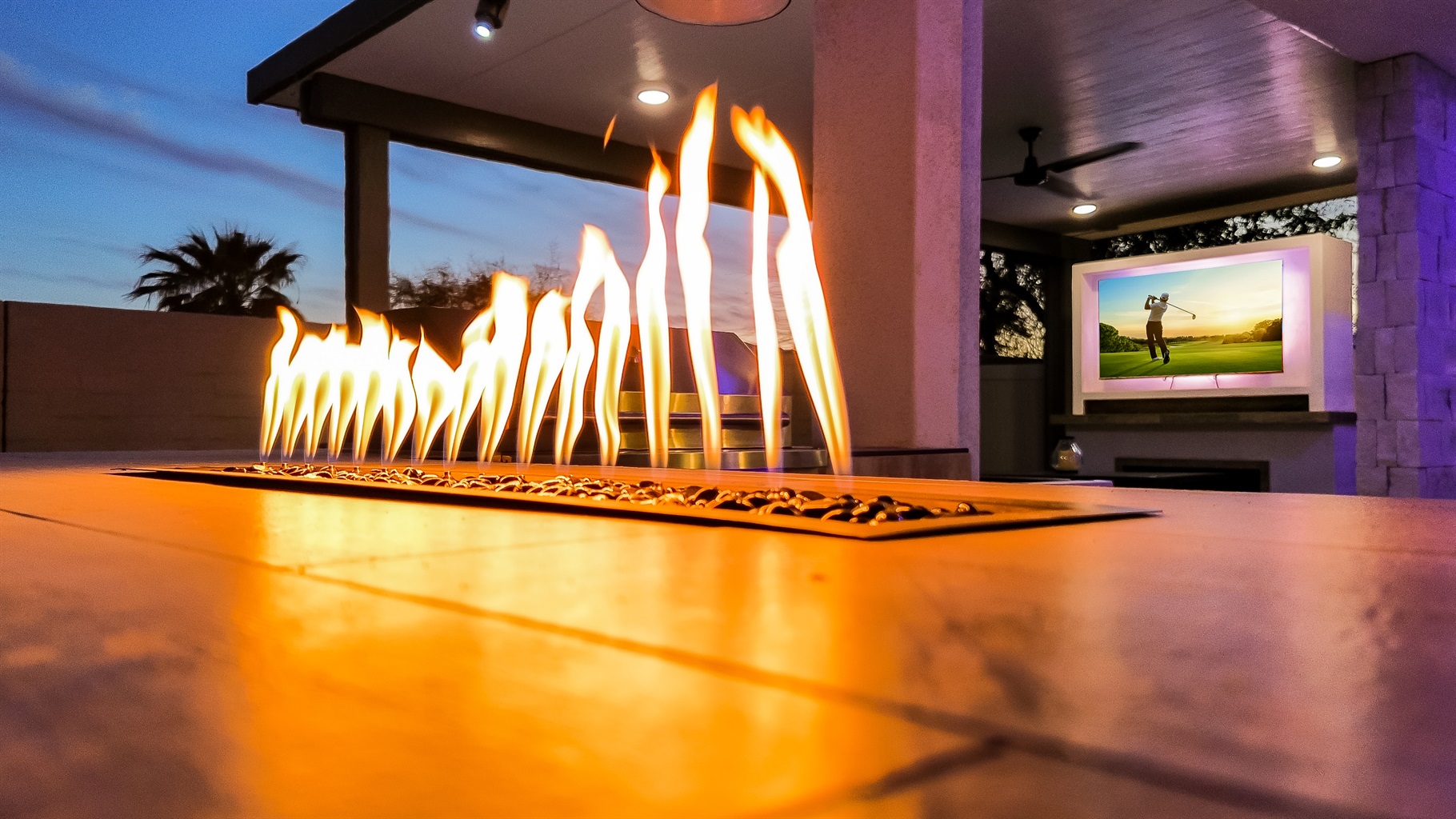 ✹ Outdoor kitchen w/ pizza oven, natural gas BBQ + outdoor fire features